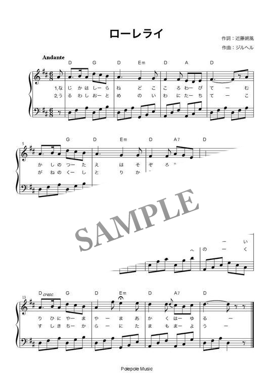 「ローレライ」弾き歌い楽譜 コンビニプリント対応