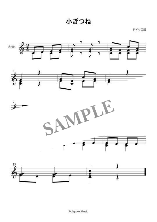 - 8音のハンドベル曲「小ぎつね」です。PDF1ページです。