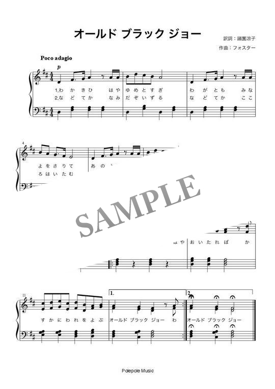「オールドブラックジョー」弾き歌い楽譜 コンビニプリント対応