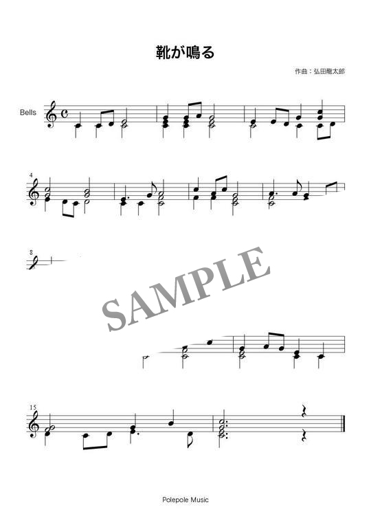 - 8音のハンドベル曲「靴が鳴る」です。PDF1ページです。
