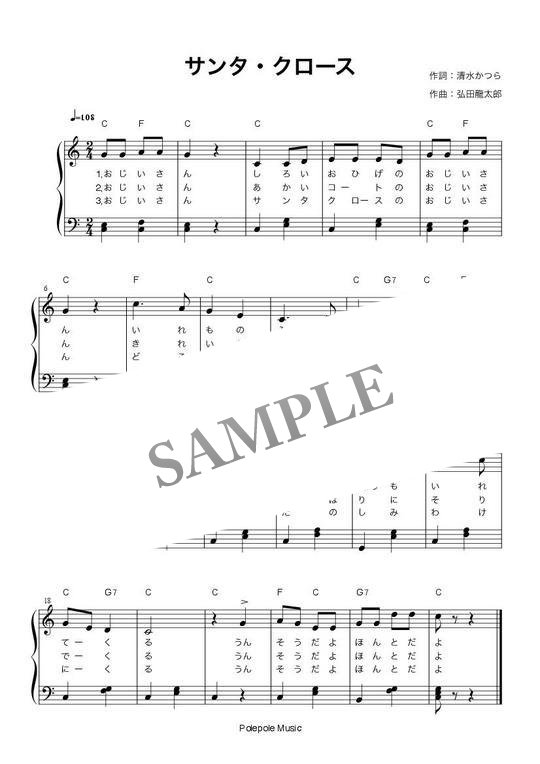 「サンタ・クロース」弾き歌い楽譜 コンビニプリント対応