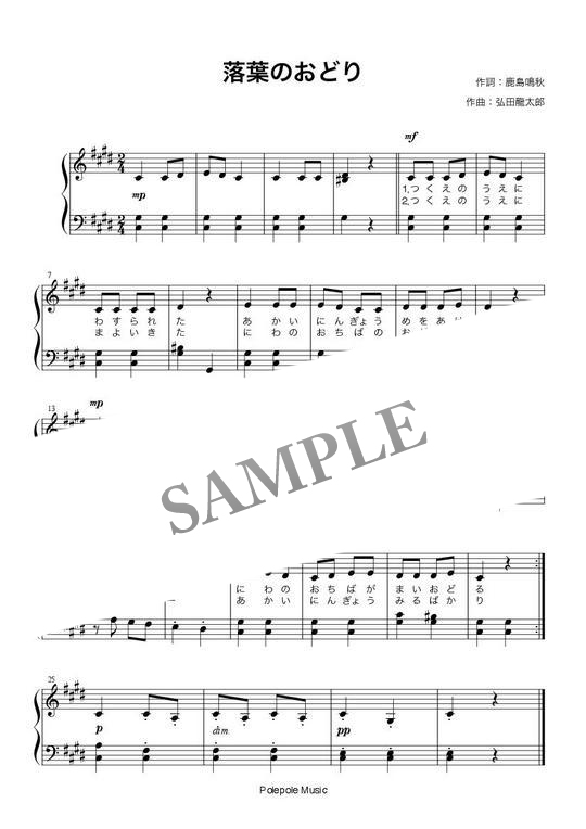 「落葉のおどり」弾き歌い楽譜 コンビニプリント対応