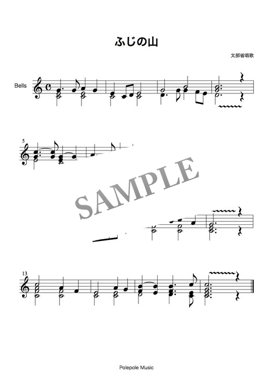 ハンドベル曲「ふじの山」 コンビニプリント対応