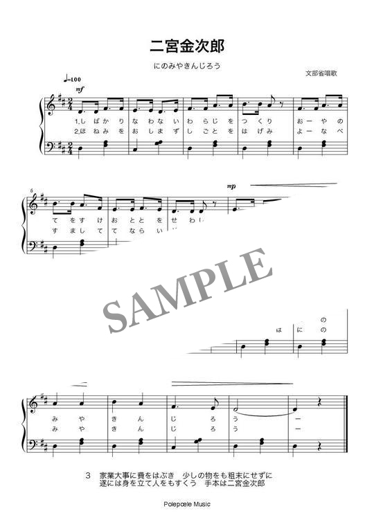 「二宮金次郎」弾き歌い楽譜 コンビニプリント対応
