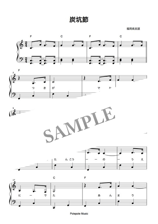 「炭坑節」弾き歌い楽譜 コンビニプリント対応