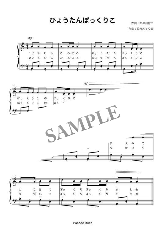「ひょうたんぽっくりこ」弾き歌い楽譜 コンビニプリント対応