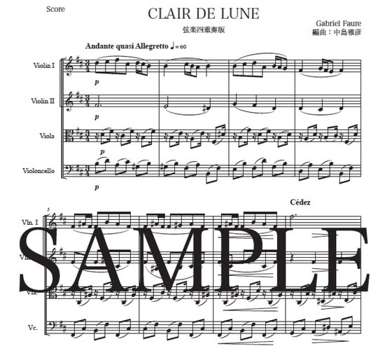 フォーレ「月の光」弦楽四重奏版 コンビニプリント対応