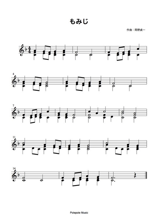 ハンドベル曲「もみじ」 コンビニプリント対応