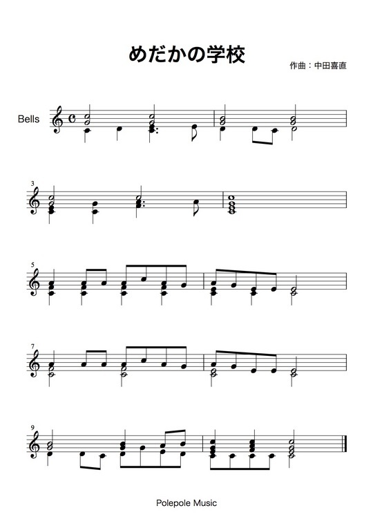 ハンドベル曲「めだかの学校」 コンビニプリント対応