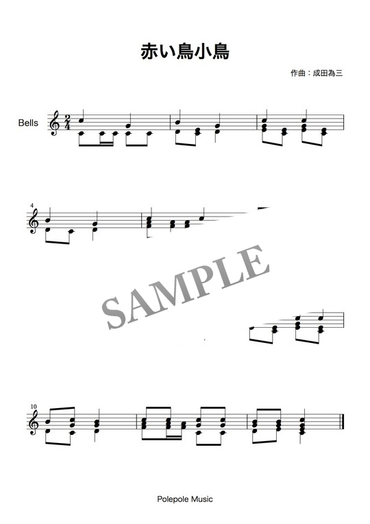 ハンドベル曲「赤い鳥小鳥」 コンビニプリント対応