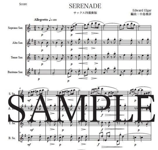 エルガー「セレナード」サックス四重奏版 コンビニプリント対応
