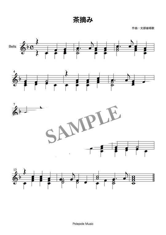 ハンドベル曲「茶摘み」 コンビニプリント対応