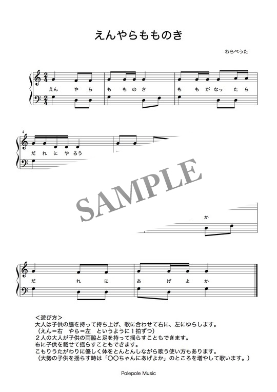 「えんやらもものき」わらべうた 弾き歌い楽譜 コンビニプリント対応