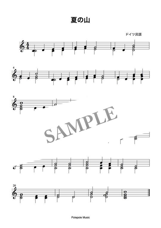 ハンドベル楽譜「夏の山」 コンビニプリント対応