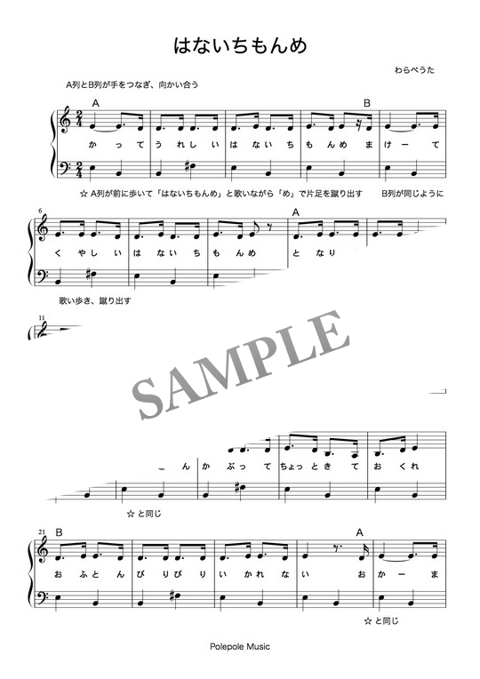 「はないちもんめ」わらべうた 弾き歌い楽譜 コンビニプリント対応