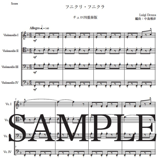 「フニクリ・フニクラ」Newチェロ四重奏版 コンビニプリント対応