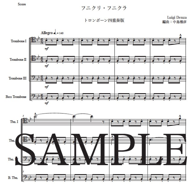 「フニクリ・フニクラ」Newトロンボーン四重奏版 コンビニプリント対応