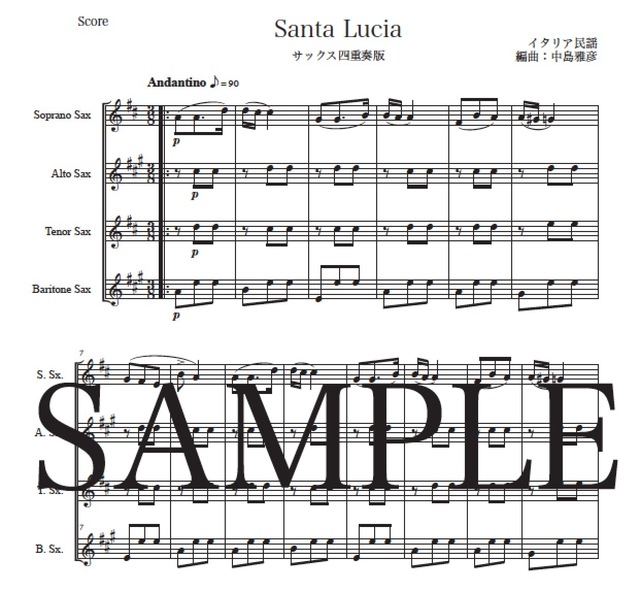 「サンタ・ルチア」サックス四重奏版 コンビニプリント対応