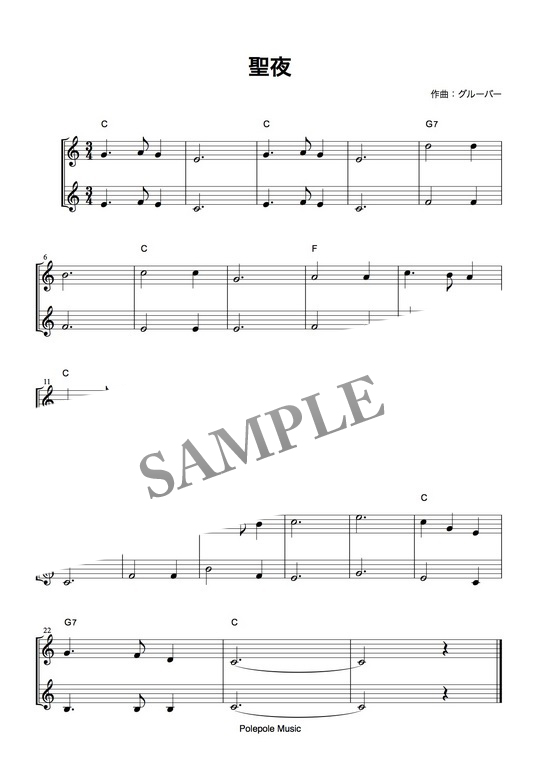 「聖夜」オカリナ二重奏 コンビニプリント対応