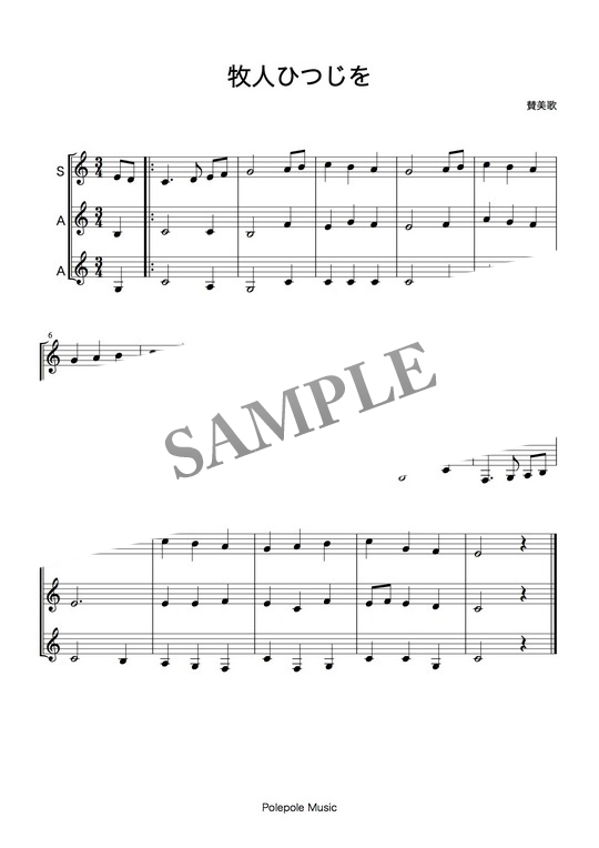 リコーダー三重奏「牧人ひつじを」 コンビニプリント対応