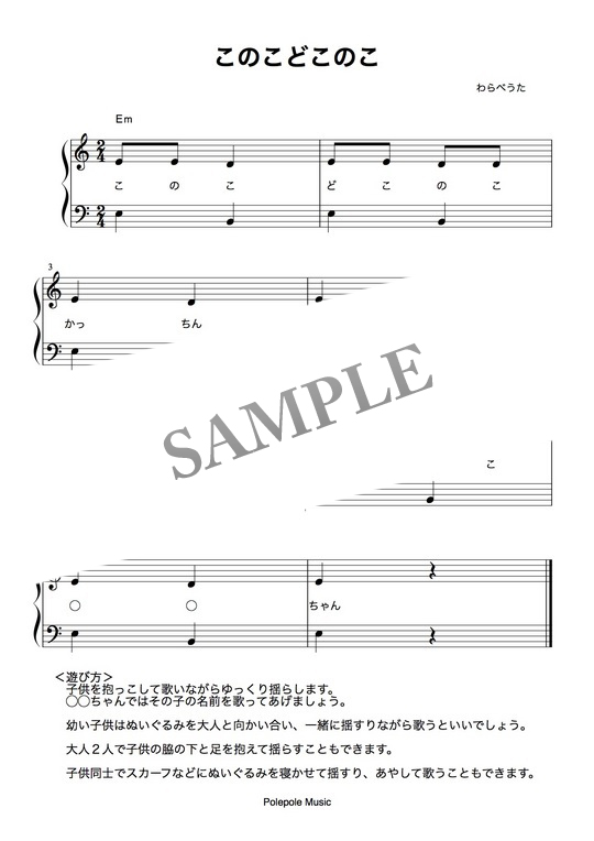 「このこどこのこ」わらべうた 弾き歌い楽譜 コンビニプリント対応