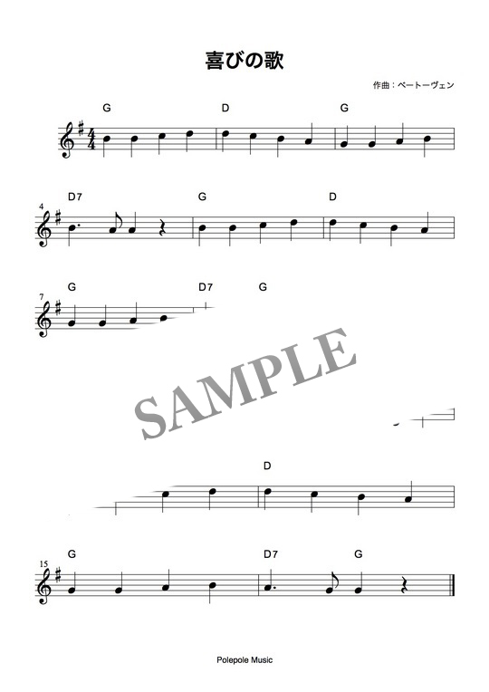 「よろこびの歌」オカリナメロディー楽譜 コンビニプリント対応