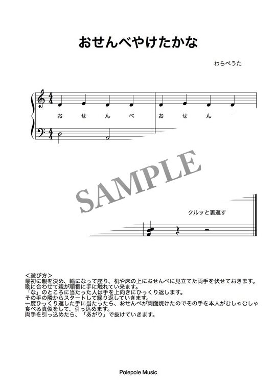「おせんべやけたかな」わらべうた 弾き歌い楽譜 コンビニプリント対応