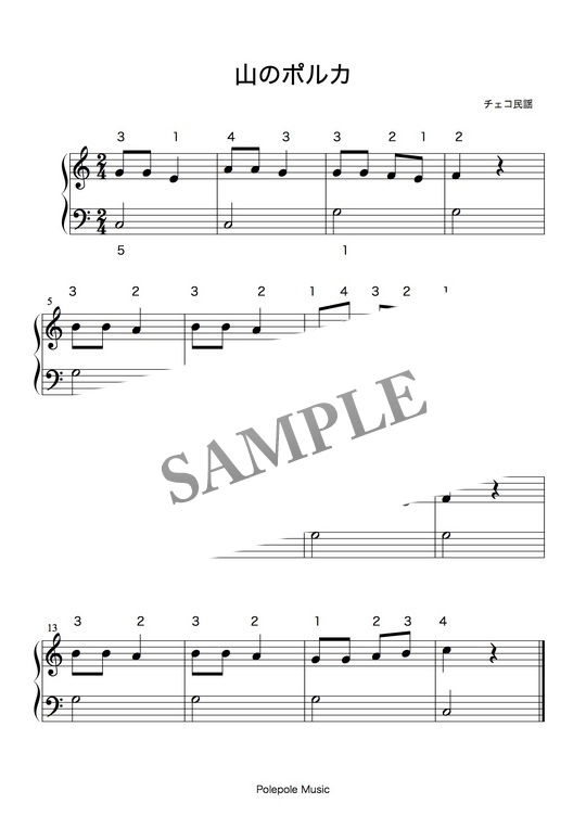 「山のポルカ」初心者向けピアノソロ楽譜 コンビニプリント対応