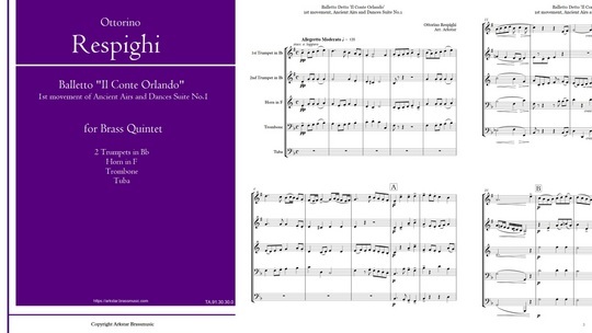 リュートの為の古風な舞曲とアリア 第1組曲から 第1曲 小舞曲 オルランド伯爵 金管五重奏版 Respighi Ancient Airs and Dances for lute Suite No.1 Il Conte Orlando コンビニプリント対応