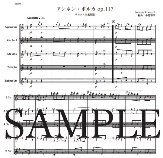 ヨハン・シュトラウス2世「アンネン・ポルカ」サックス五重奏版 コンビニプリント対応