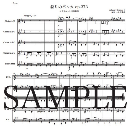 ヨハン・シュトラウス2世「狩りのポルカ」クラリネット五重奏版 コンビニプリント対応