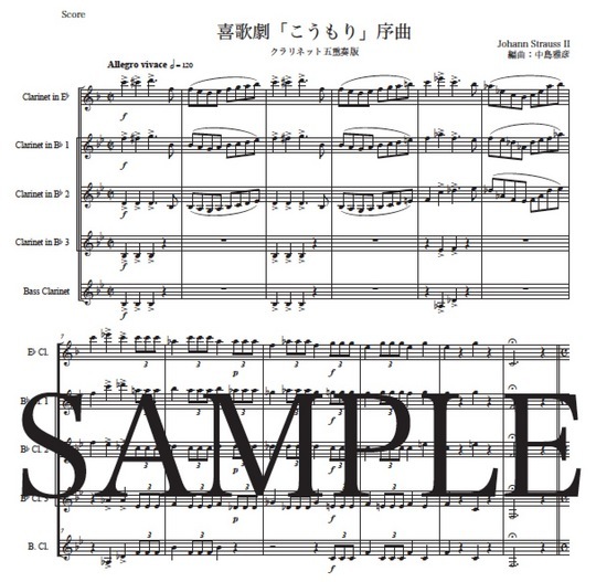 ヨハン・シュトラウス2世「こうもり序曲」クラリネット五重奏版 コンビニプリント対応