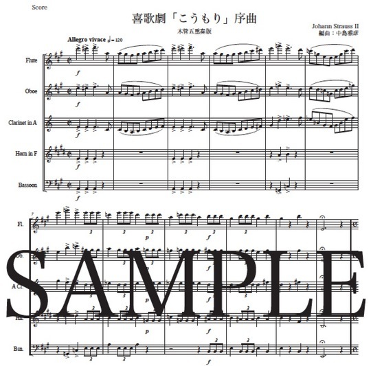 ヨハン・シュトラウス2世「こうもり序曲」木管五重奏版 コンビニプリント対応