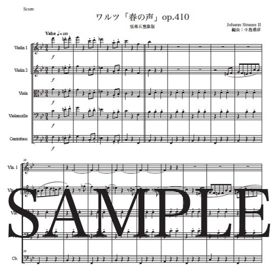 ヨハン・シュトラウス2世「春の声」弦楽五重奏版 コンビニプリント対応