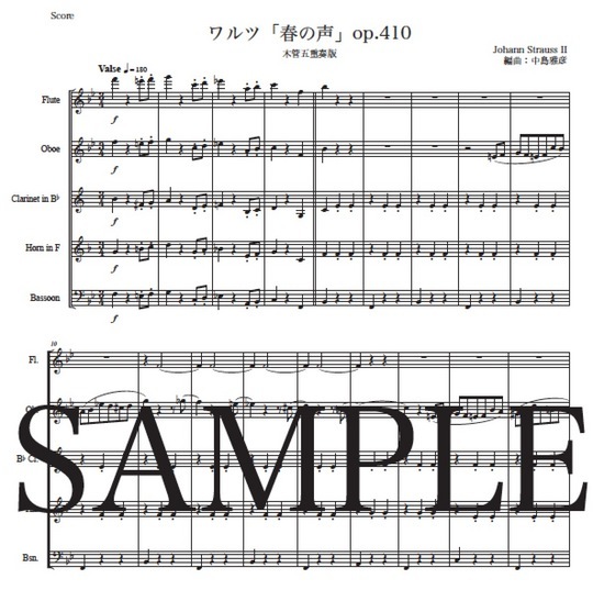 ヨハン・シュトラウス2世「春の声」木管五重奏版 コンビニプリント対応