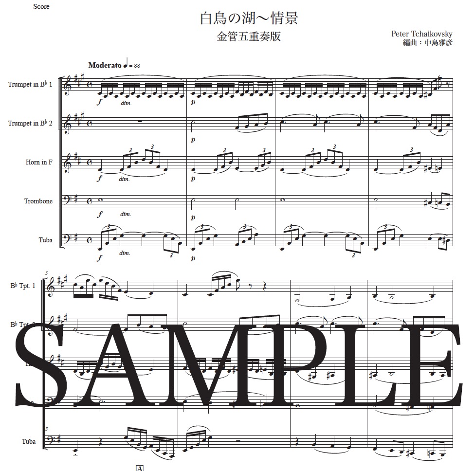 チャイコフスキー「白鳥の湖~情景」金管五重奏版 コンビニプリント対応