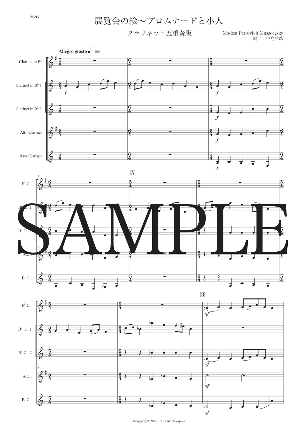 ムソルグスキー「展覧会の絵?プロムナードと小人」クラリネット五重奏版 コンビニプリント対応