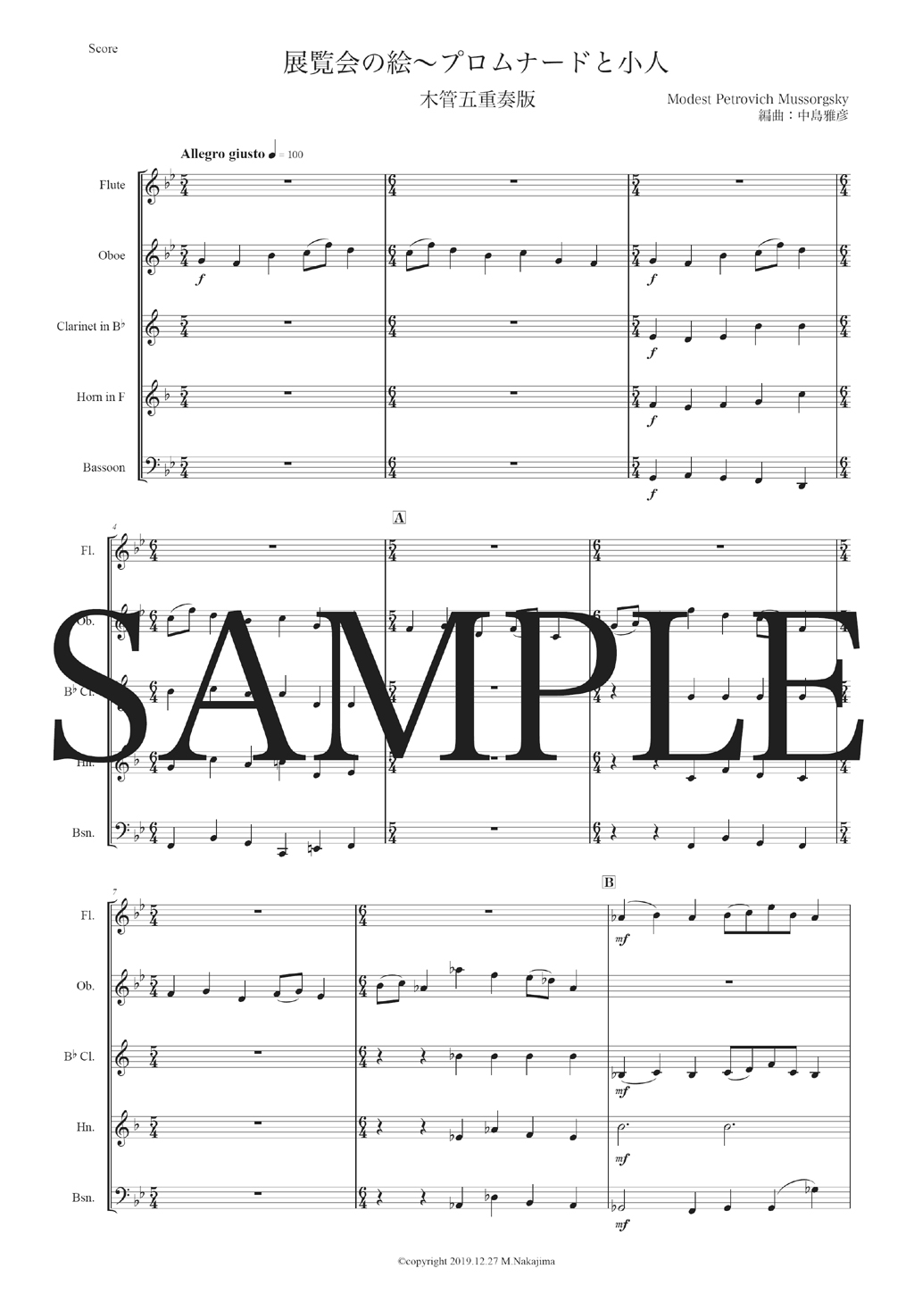 ムソルグスキー「展覧会の絵?プロムナードと小人」木管五重奏版 コンビニプリント対応