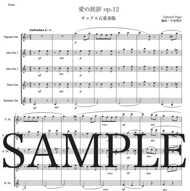 エルガー「愛の挨拶」サックス五重奏版 コンビニプリント対応