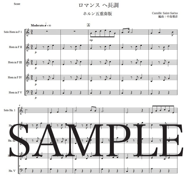サン=サーンス「ロマンス ヘ長調」ホルン五重奏版 コンビニプリント対応