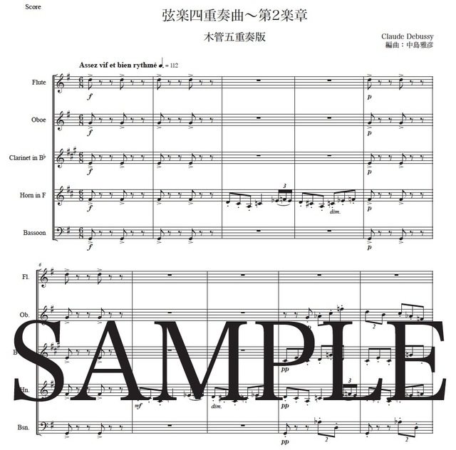 ドビュッシー「弦楽四重奏曲~第2楽章」木管五重奏版 コンビニプリント対応