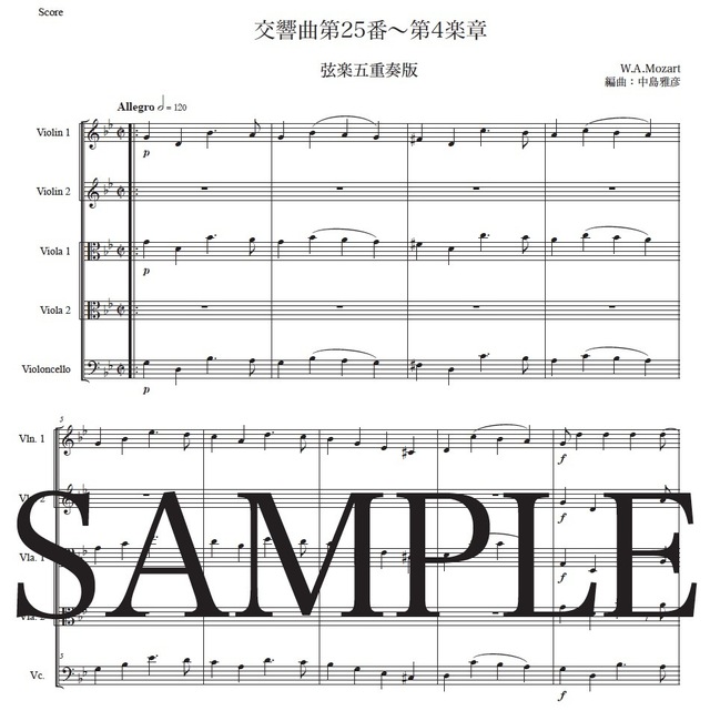 モーツァルト「交響曲第25番~第4楽章」弦楽五重奏版 コンビニプリント対応