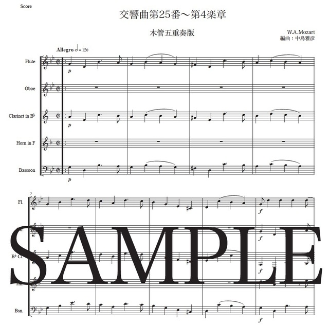 モーツァルト「交響曲第25番~第4楽章」木管五重奏版 コンビニプリント対応