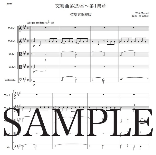モーツァルト「交響曲第29番~第1楽章」弦楽五重奏版 コンビニプリント対応