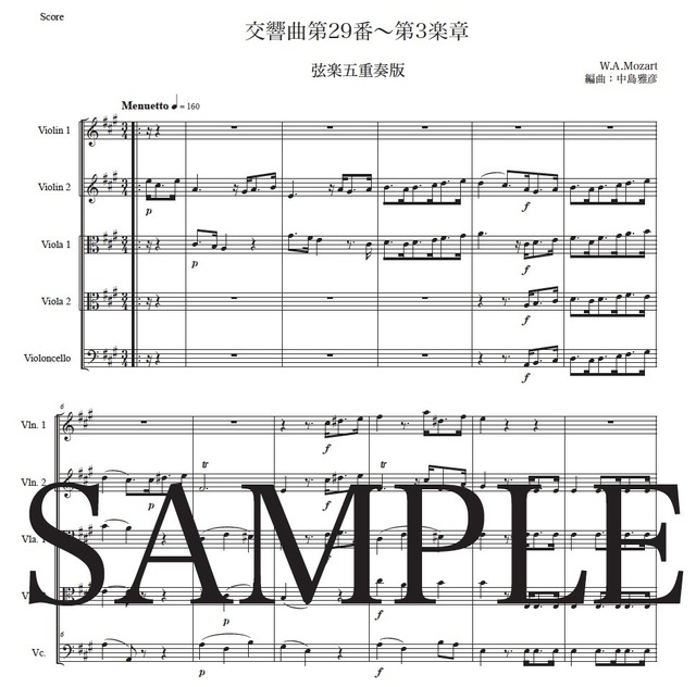 モーツァルト「交響曲第29番~第3楽章」弦楽五重奏版 コンビニプリント対応