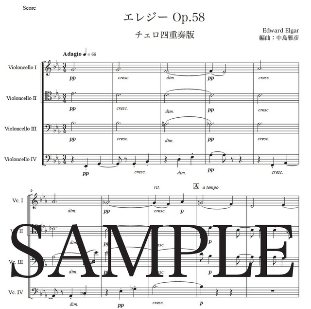 エルガー「エレジー」チェロ四重奏版 コンビニプリント対応