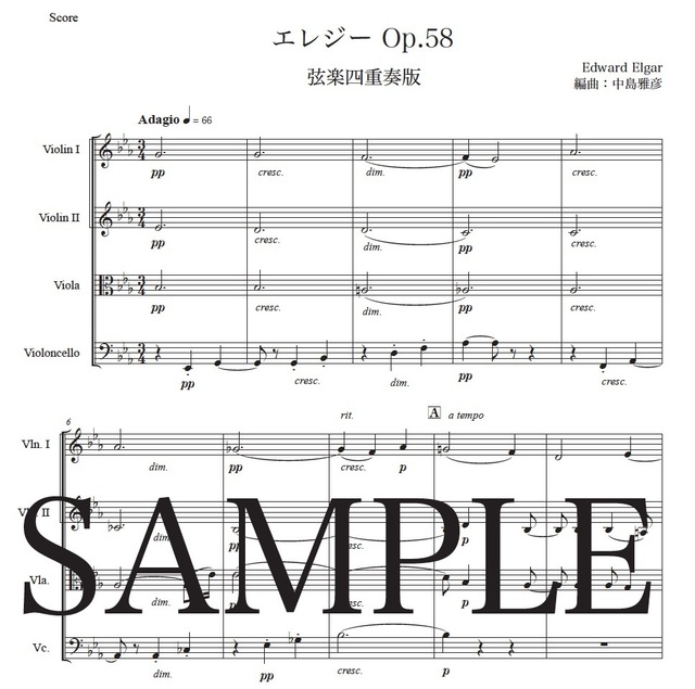 エルガー「エレジー」弦楽四重奏版 コンビニプリント対応