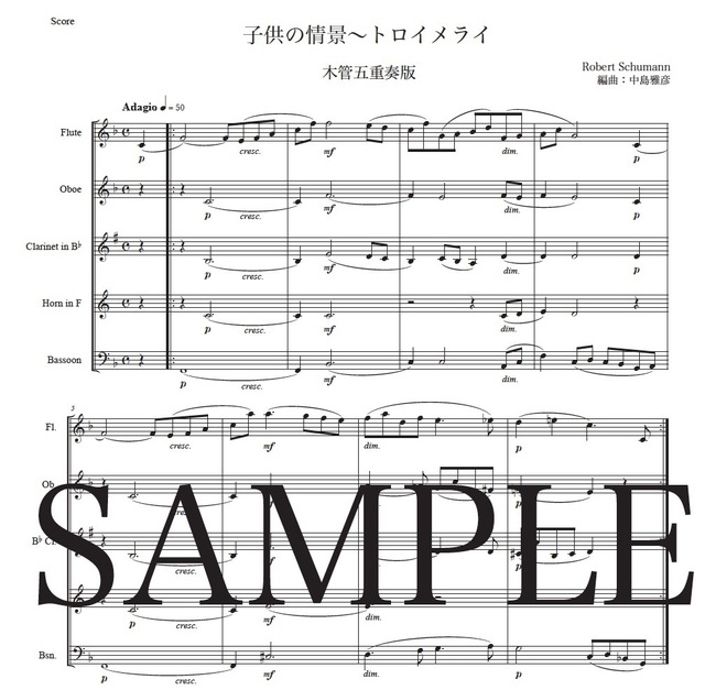 シューマン 「子供の情景~トロイメライ」木管五重奏版 コンビニプリント対応