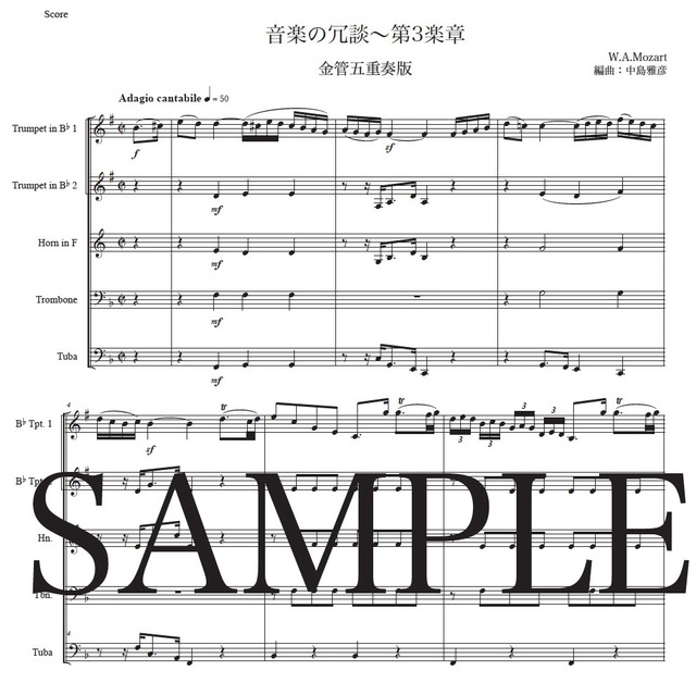 モーツァルト「音楽の冗談~第3楽章」金管五重奏版 コンビニプリント対応