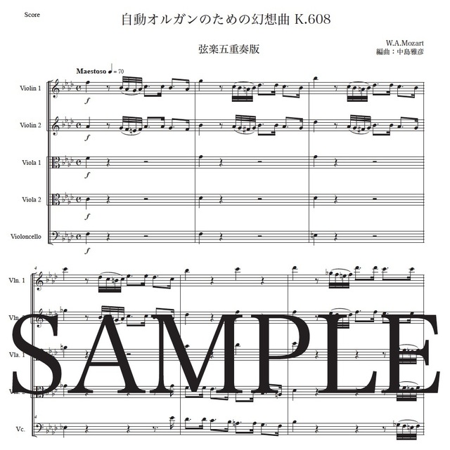 モーツァルト「自動オルガンのための幻想曲」弦楽五重奏版 コンビニプリント対応